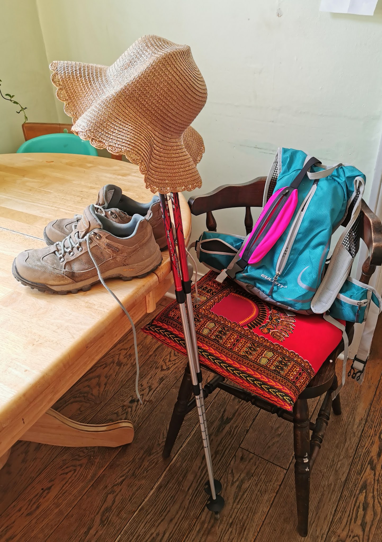 | A photo of walking equipment in my nice quiet sunny kitchen today. |